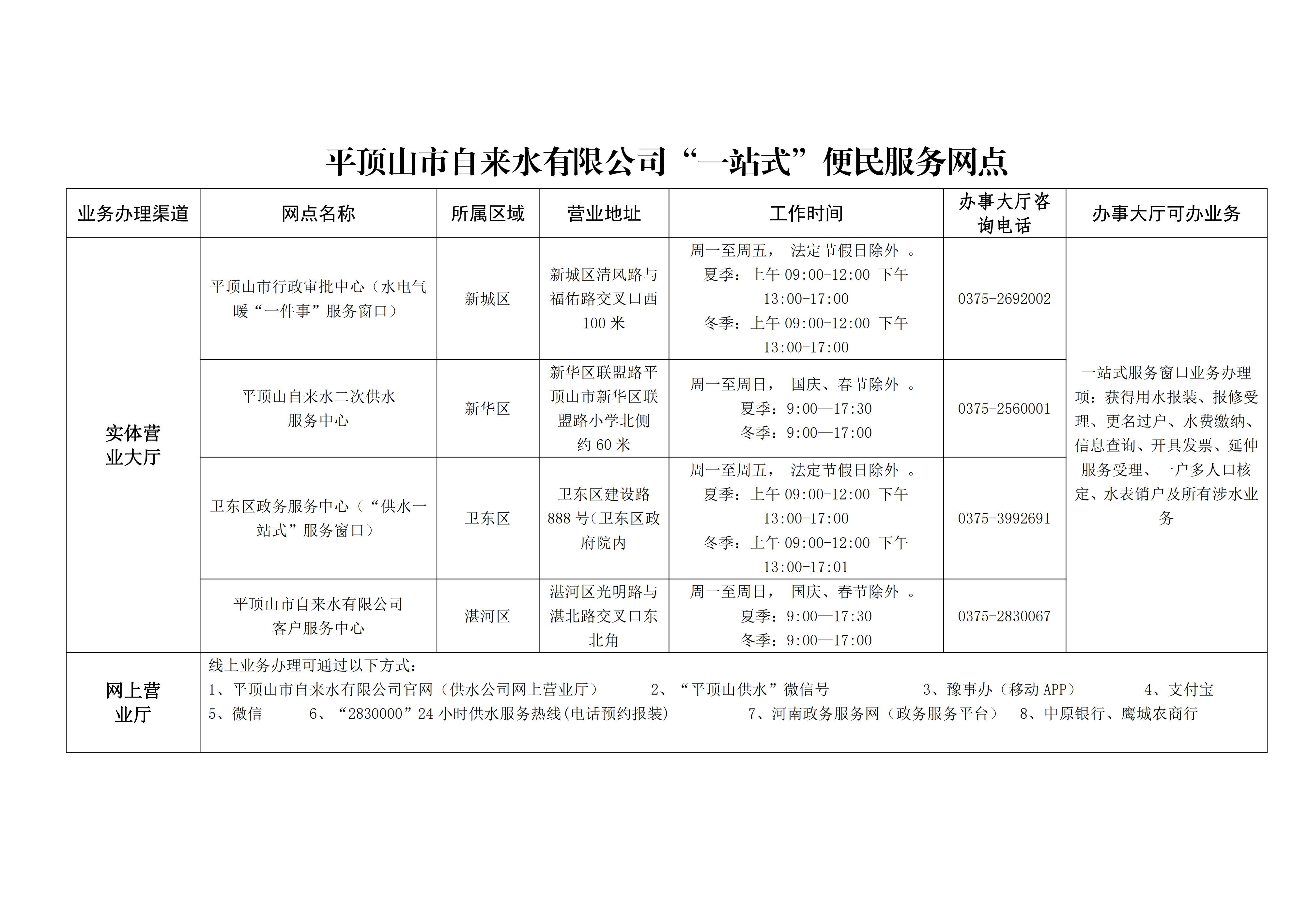 平頂山市自來水有限公司“一站式”便民服務(wù)網(wǎng)點