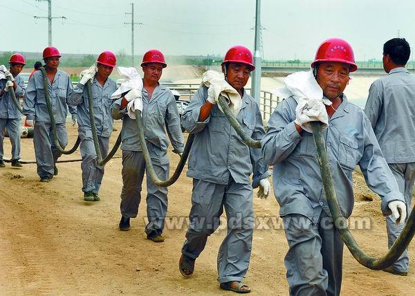 據(jù)悉,為給18臺(tái)水泵供電,他們配備了7臺(tái)配電柜,所接的線頭達(dá)四五百個(gè)。每人在自檢3遍的同時(shí),組內(nèi)人員自檢3遍,再由3名負(fù)責(zé)人各自檢查一遍。這項(xiàng)以前需要漫長(zhǎng)過程的工作,他們只用8天時(shí)間就完成了。魏師傅告訴記者,調(diào)試時(shí)間長(zhǎng)達(dá)近4個(gè)小時(shí),當(dāng)最后一臺(tái)泵成功調(diào)試完畢后,疲勞一下子涌上來,他少氣無力地招呼工友下班回駐地吃飯。